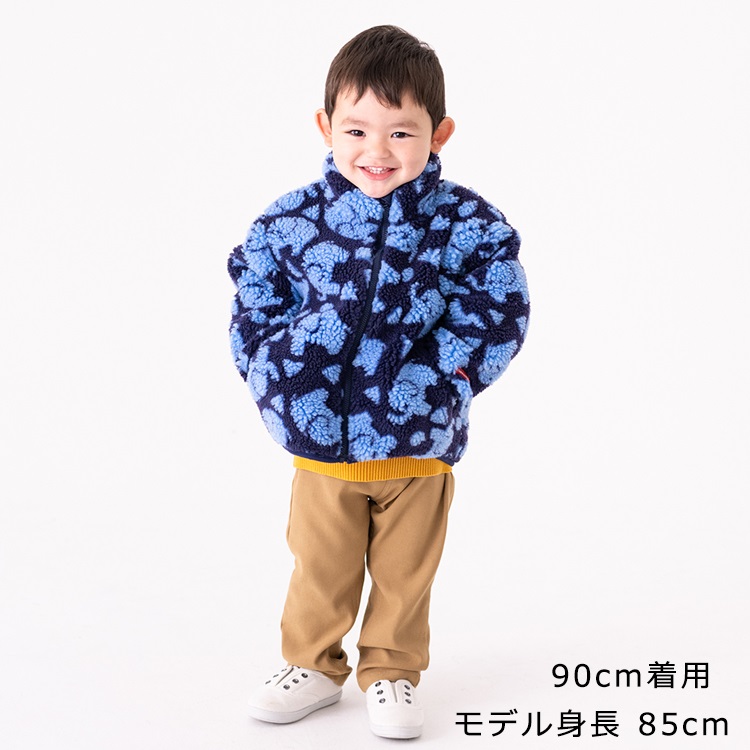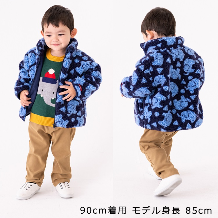 *ぞう総柄ボアジャケット(ネイビー-100cm)