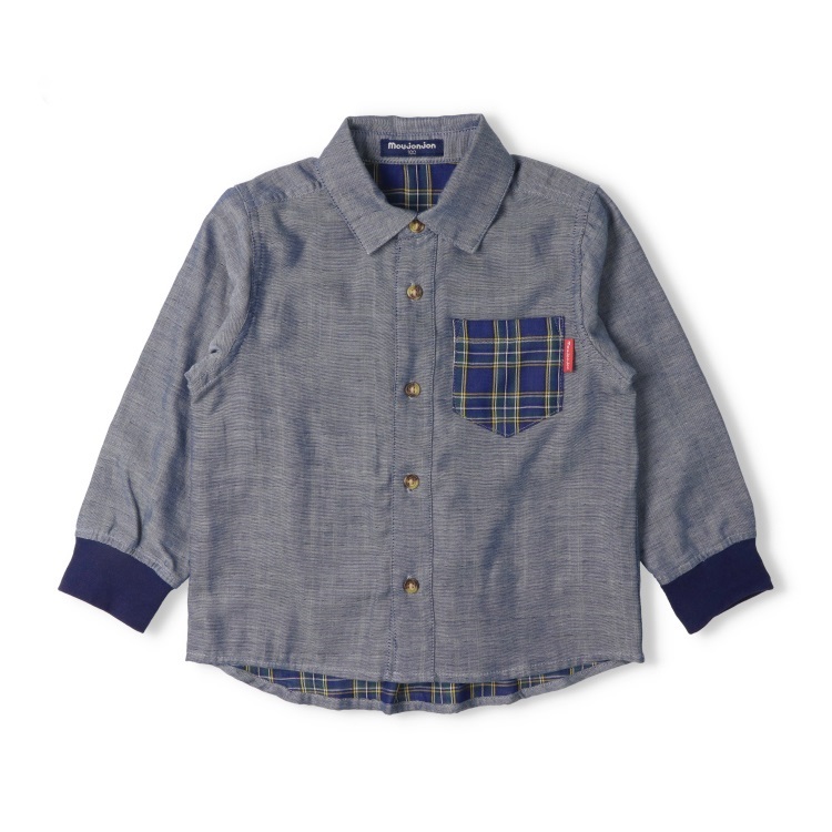袖口リブWガーゼ長袖シャツ(ネイビー-100cm)