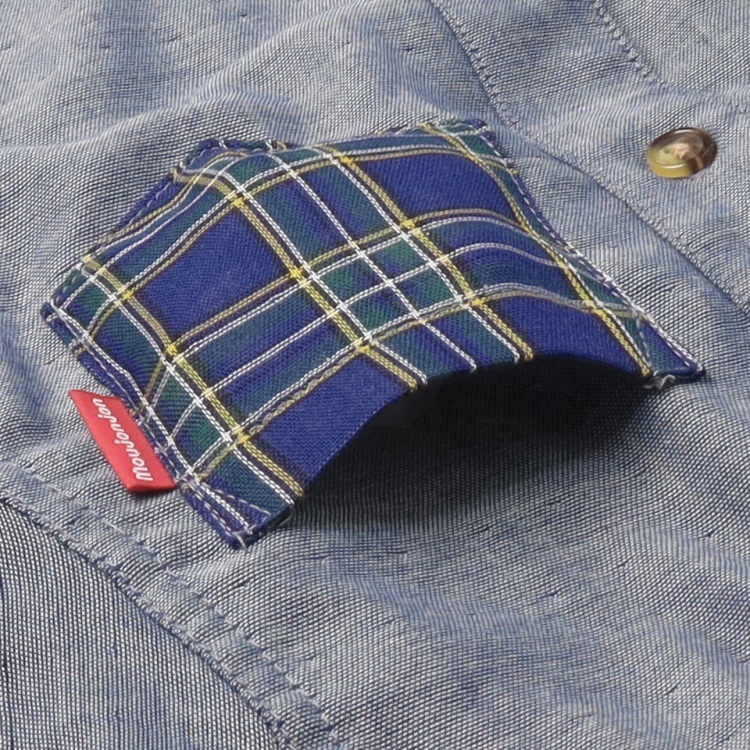 裏と胸ポケットはネイビーのタータンチェック柄がお洒落!