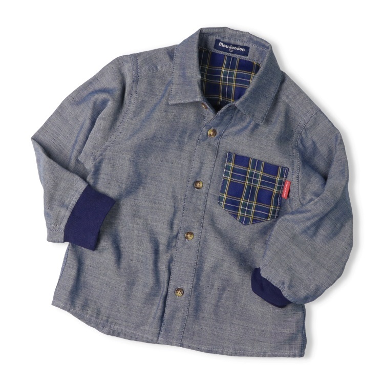 袖口リブWガーゼ長袖シャツ(ネイビー-90cm)