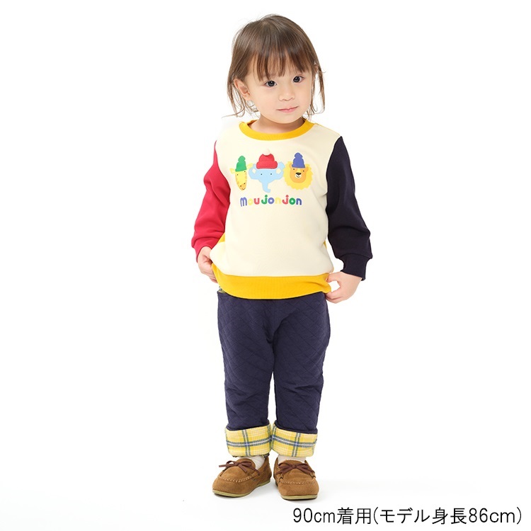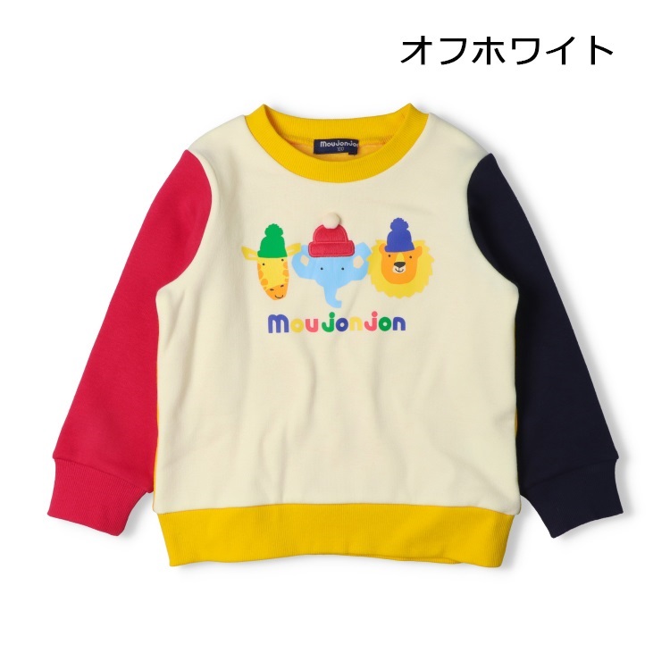 【爆温】動物プリント配色裏起毛トレーナー(オフホワイト-100cm)