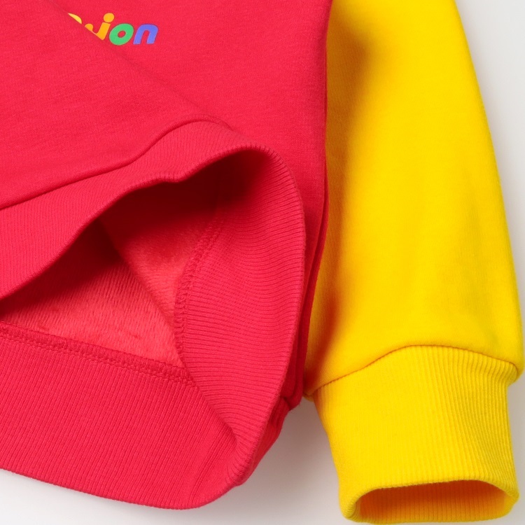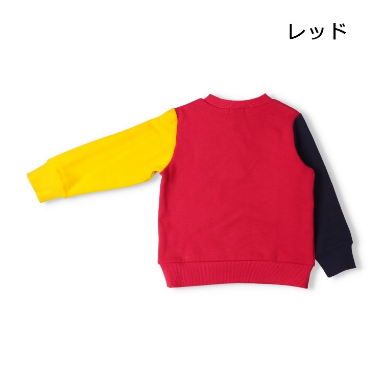 【爆温】動物プリント配色裏起毛トレーナー(レッド-90cm)