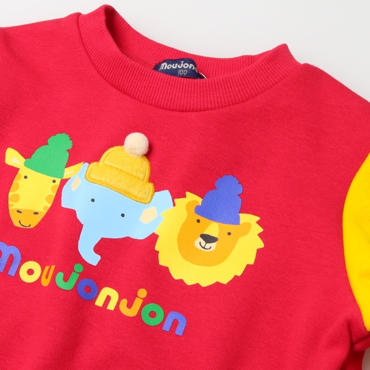 【爆温】動物プリント配色裏起毛トレーナー(レッド-100cm)