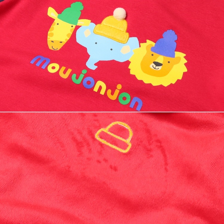 【爆温】動物プリント配色裏起毛トレーナー(レッド-80cm)