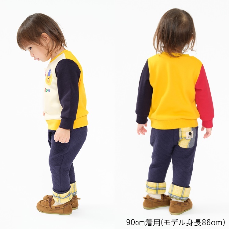 【爆温】動物プリント配色裏起毛トレーナー(オフホワイト-90cm)
