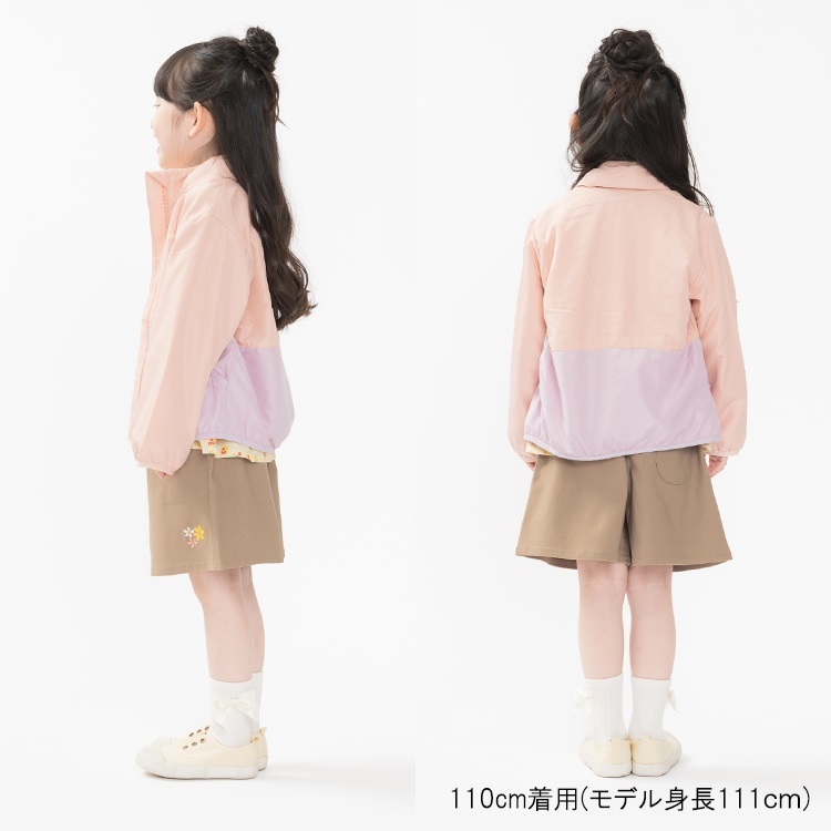 フード衿収納タフタバイカラージャケット(ピンク-120cm)