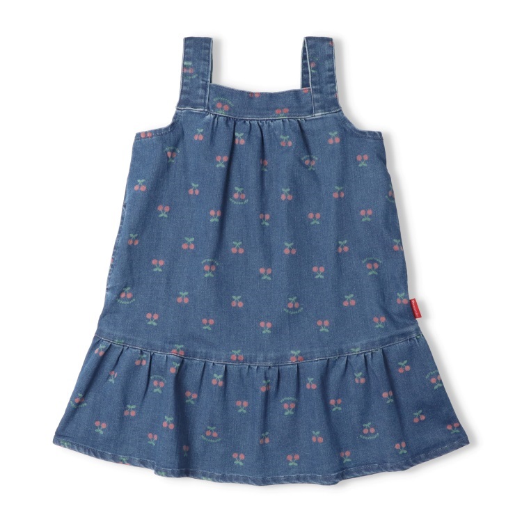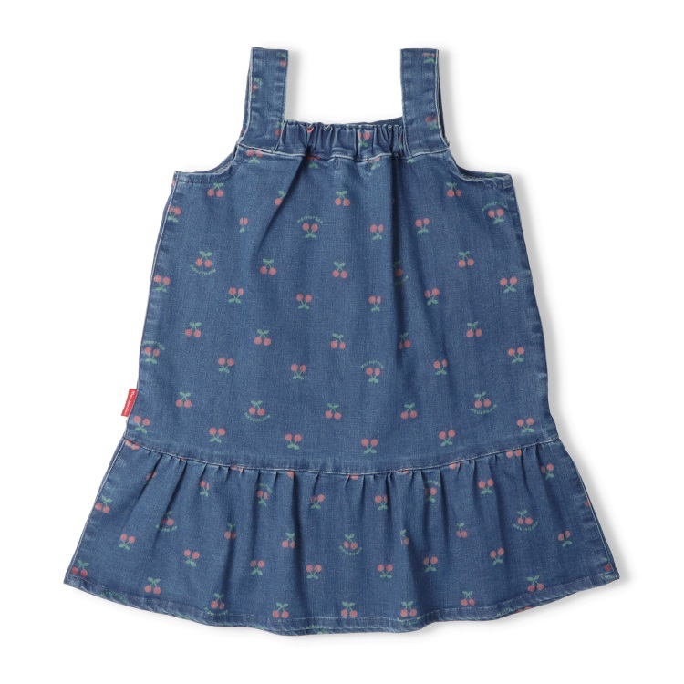 *チェリー柄デニムジャンパースカート(ブルー-100cm)