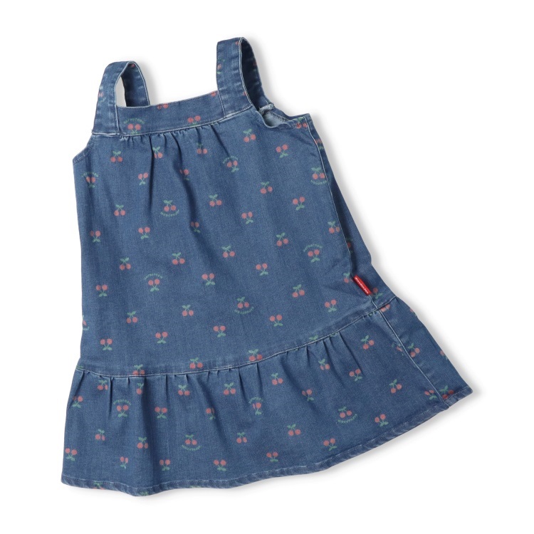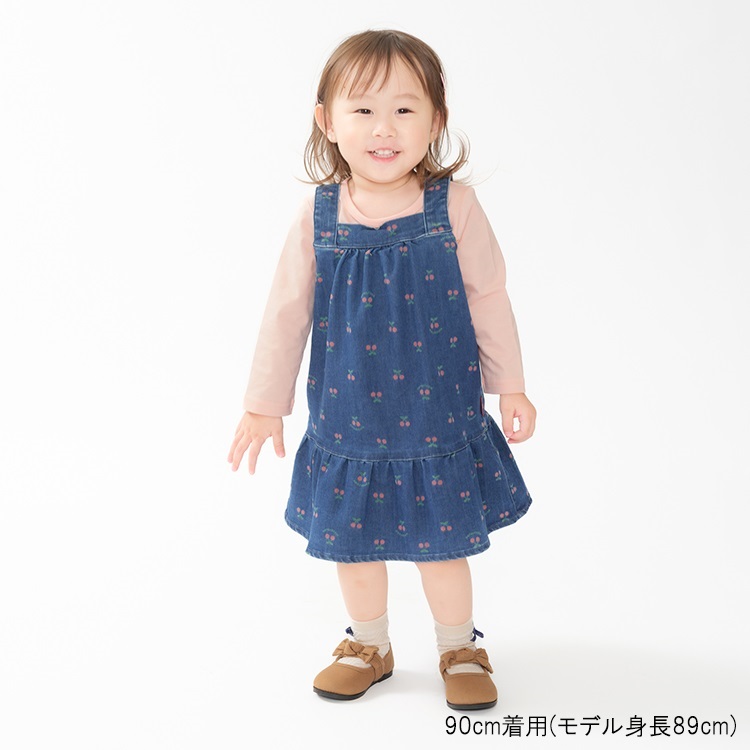 *チェリー柄デニムジャンパースカート(ブルー-90cm)