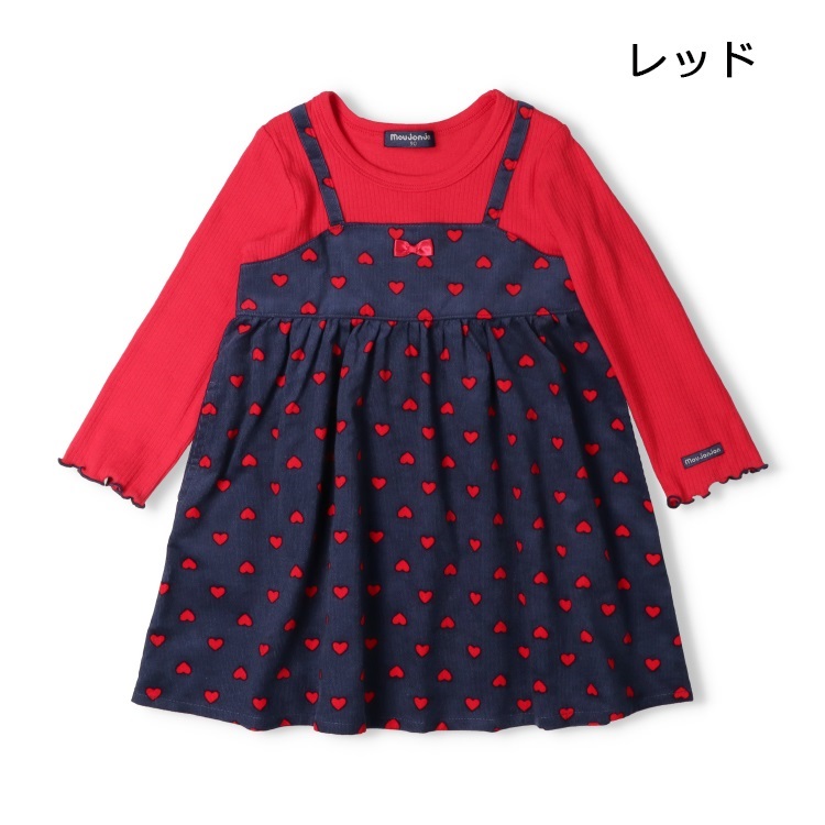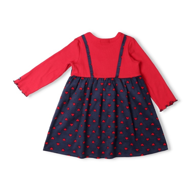 *ハート柄キャミ重ね着風長袖ワンピース(レッド-100cm)