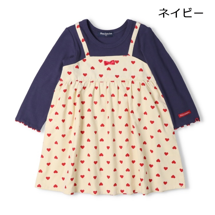 *ハート柄キャミ重ね着風長袖ワンピース(ネイビー-80cm)