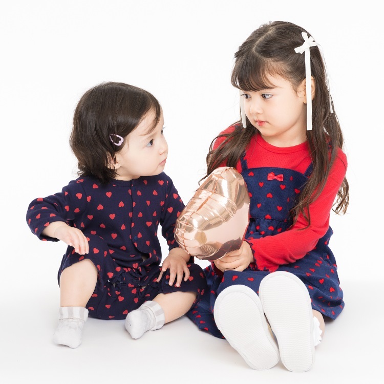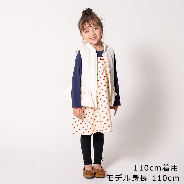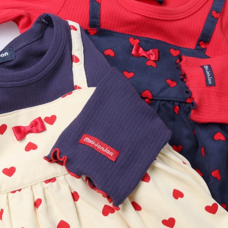 素材違いですが、同じハートの総柄のパンツ(M65004)、ロンパース(M64704)があるので、姉妹でお揃い、ペアコーデ、リンクコーデもおすすめ!