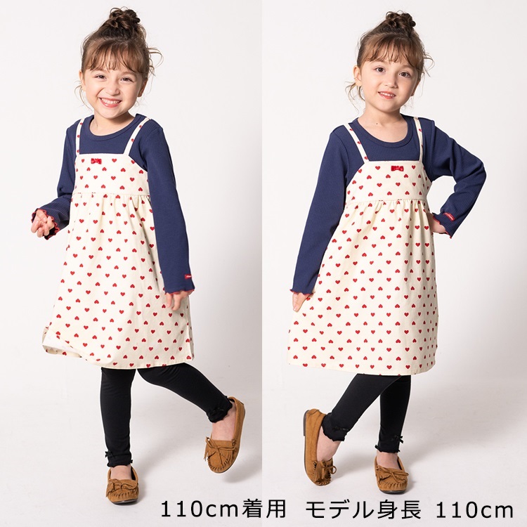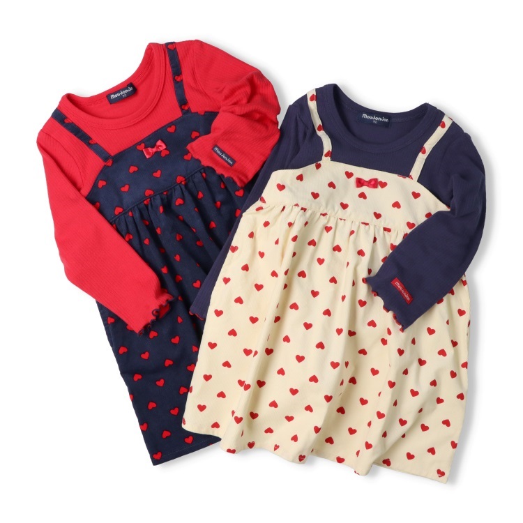 *ハート柄キャミ重ね着風長袖ワンピース
