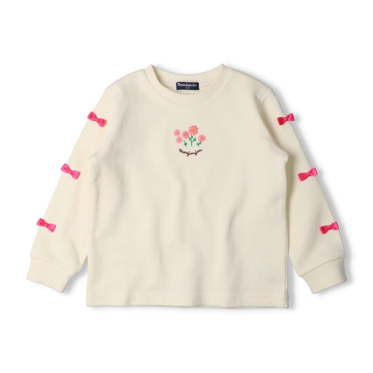 お花刺繍リボン付き裏毛トレーナー(オフホワイト-120cm)