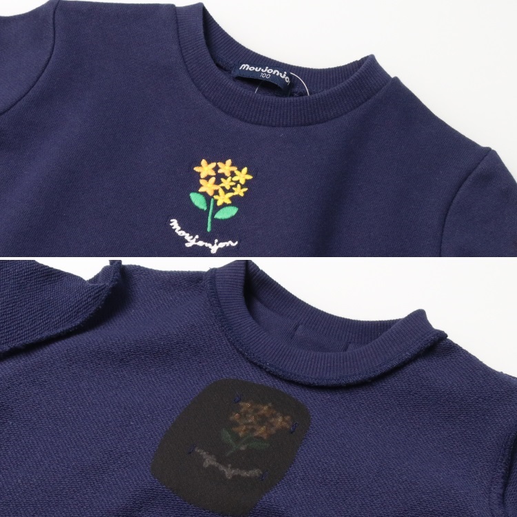 お花刺繍リボン付き裏毛トレーナー(ネイビー-100cm)