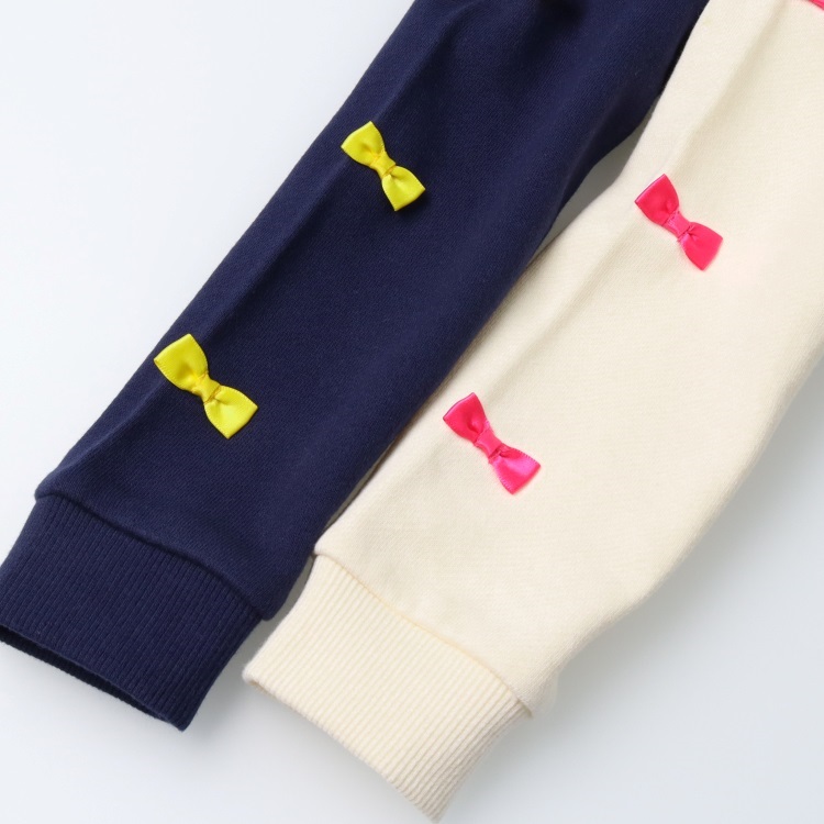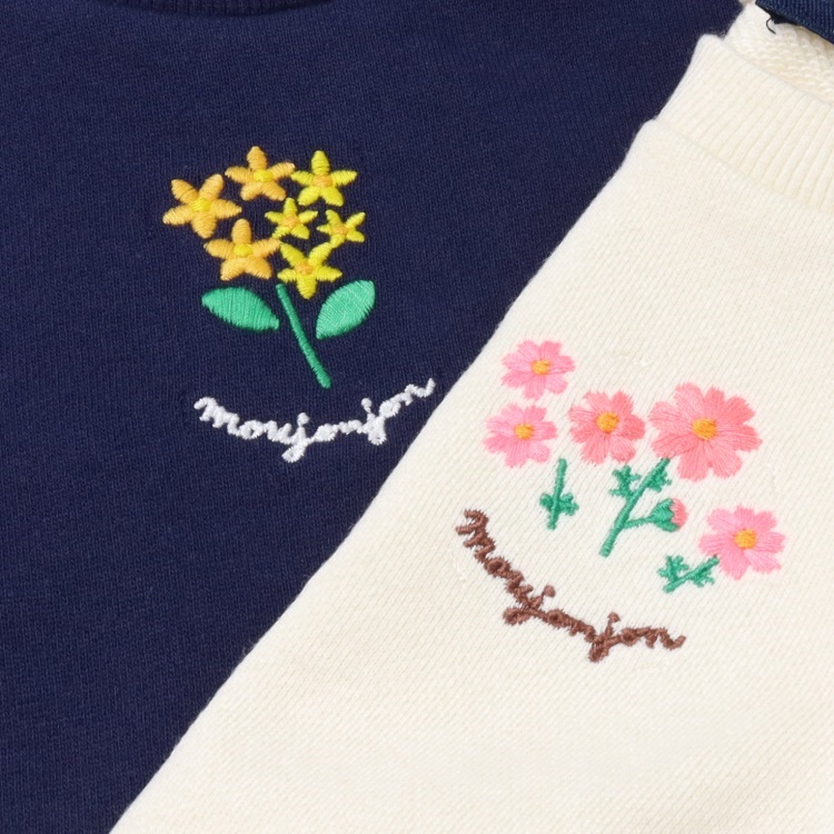 お花刺繍リボン付き裏毛トレーナー(オフホワイト-100cm)
