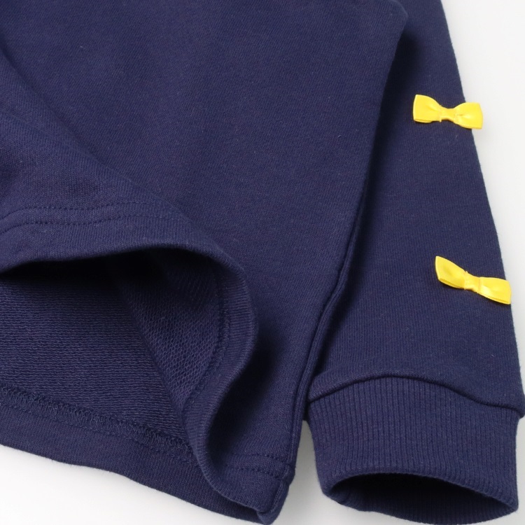 お花刺繍リボン付き裏毛トレーナー(ネイビー-140cm)