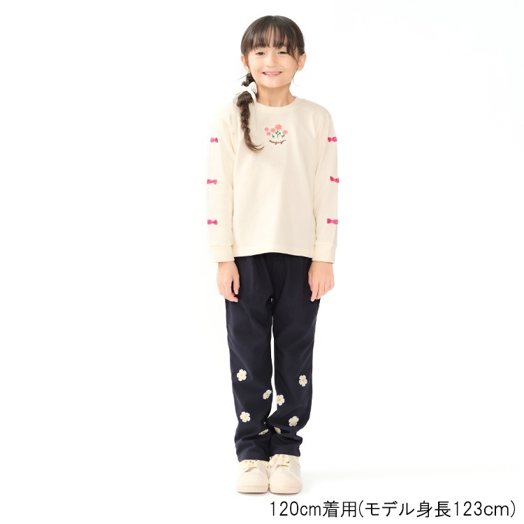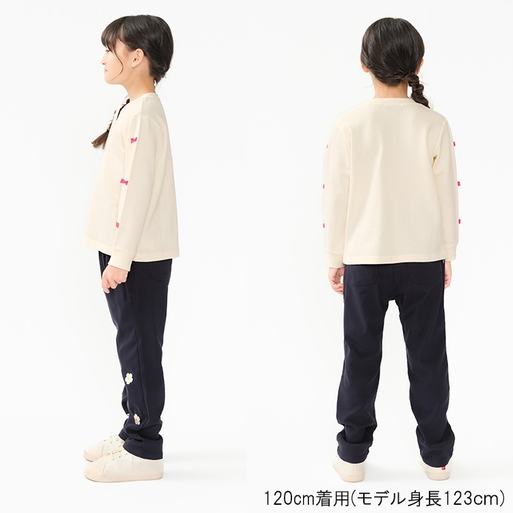 お花刺繍リボン付き裏毛トレーナー(オフホワイト-140cm)