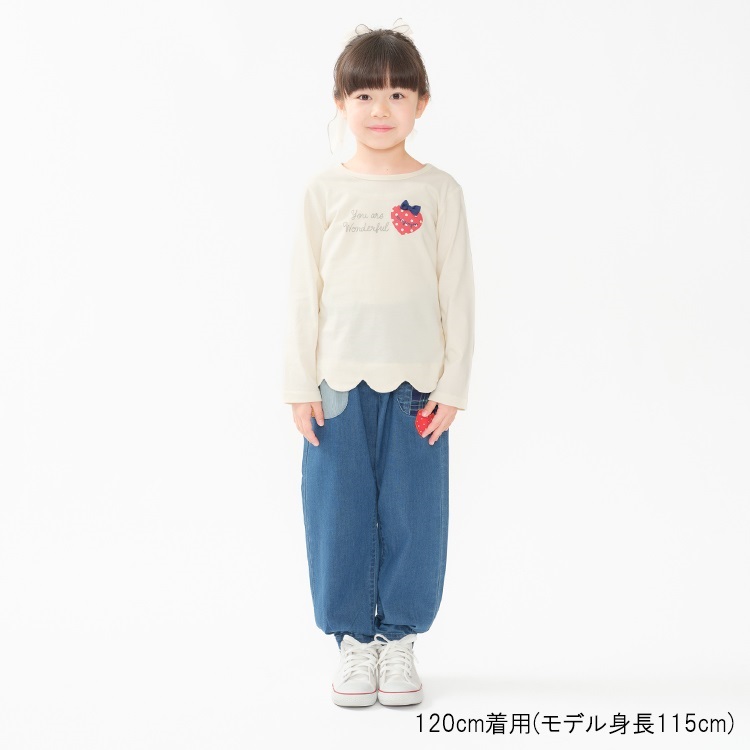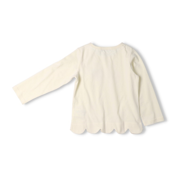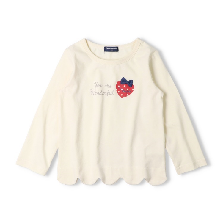 ハート・チェリープリント裾スカラップ長袖Tシャツ(オフホワイト-110cm)