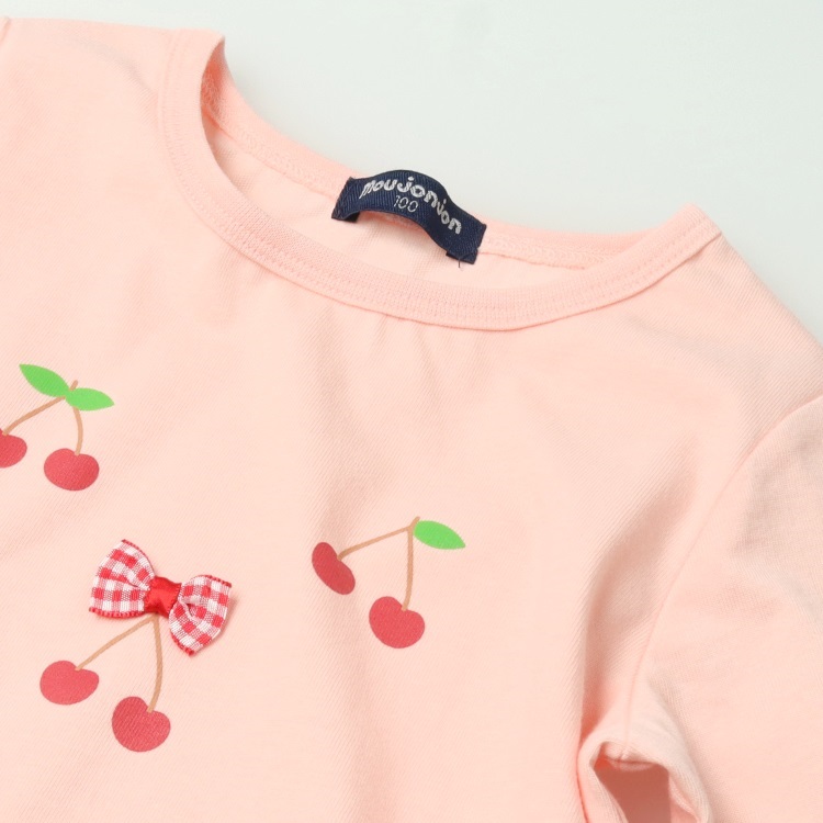 ハート・チェリープリント裾スカラップ長袖Tシャツ(ピンク-100cm)