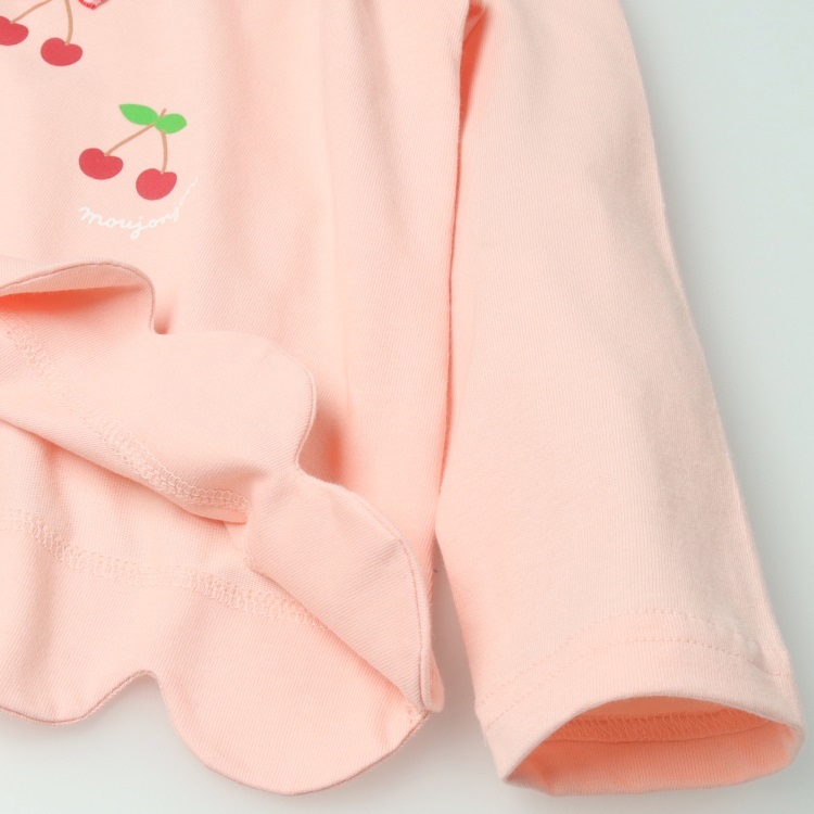ハート・チェリープリント裾スカラップ長袖Tシャツ(ピンク-80cm)