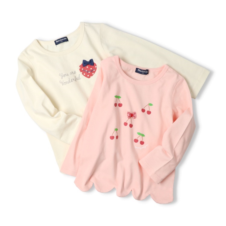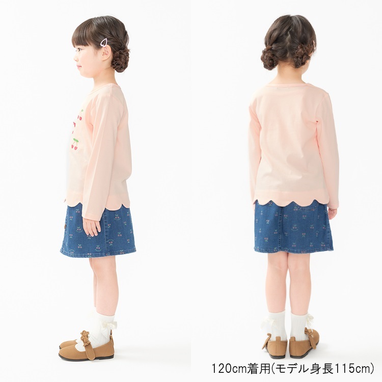 ハート・チェリープリント裾スカラップ長袖Tシャツ