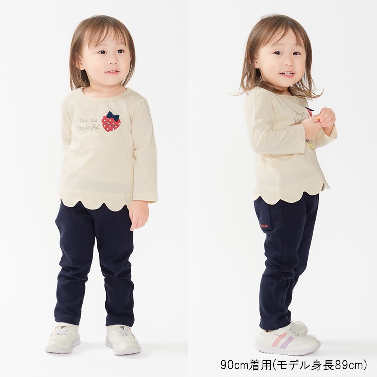 ハート・チェリープリント裾スカラップ長袖Tシャツ(オフホワイト-90cm)