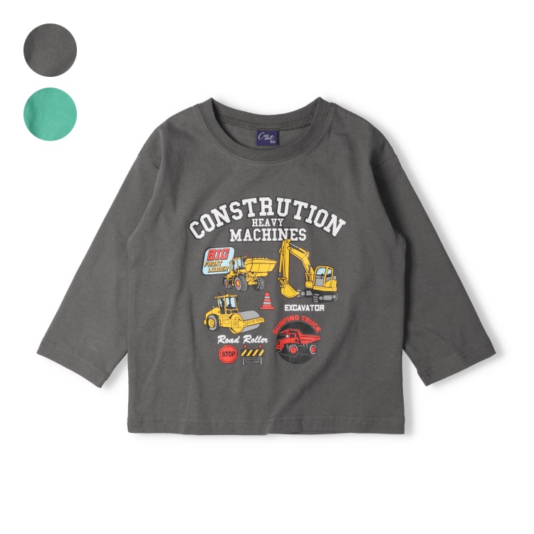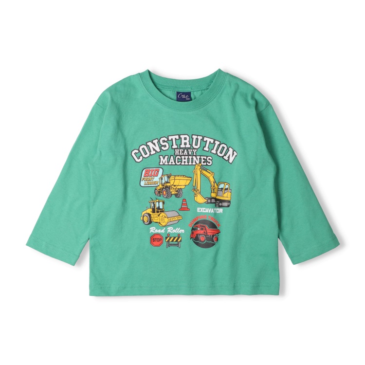 *働く車プリント長袖Tシャツ(グリーン-110cm)