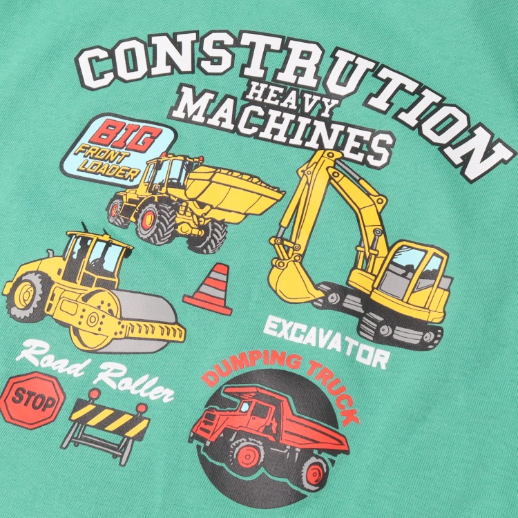 *働く車プリント長袖Tシャツ(グリーン-130cm)