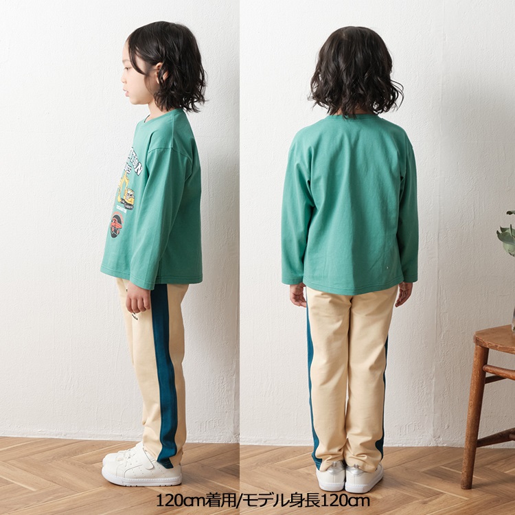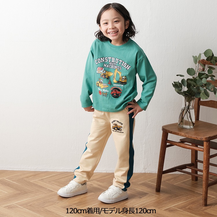 *働く車プリント長袖Tシャツ(グリーン-120cm)