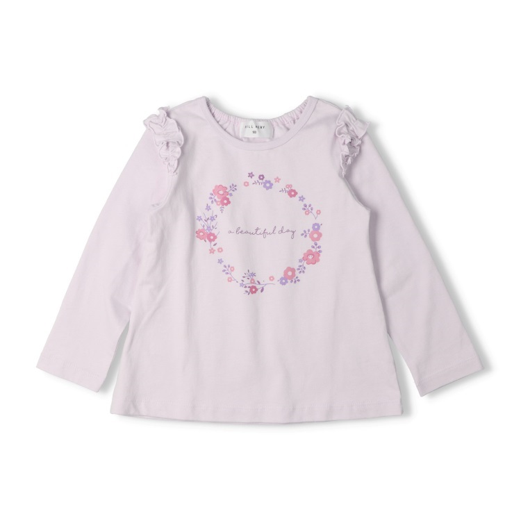 *【WEB限定】お花ロゴプリント肩フリル長袖Tシャツ(ラベンダー-90cm)