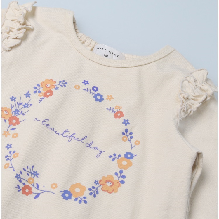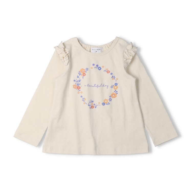 *【WEB限定】お花ロゴプリント肩フリル長袖Tシャツ(ベージュ-90cm)