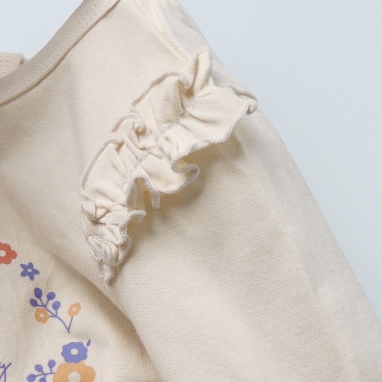 *【WEB限定】お花ロゴプリント肩フリル長袖Tシャツ(ベージュ-80cm)