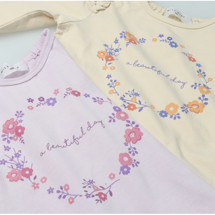 *【WEB限定】お花ロゴプリント肩フリル長袖Tシャツ(ラベンダー-100cm)