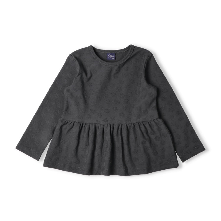 *お花柄ジャガード長袖Tシャツ(ブラック-100cm)