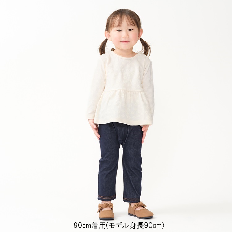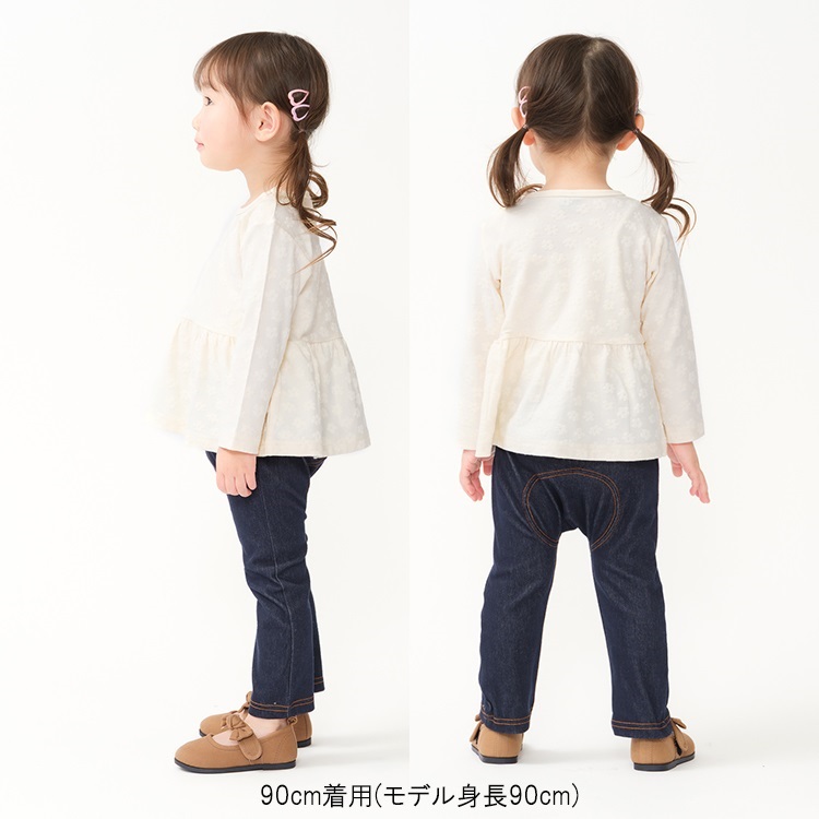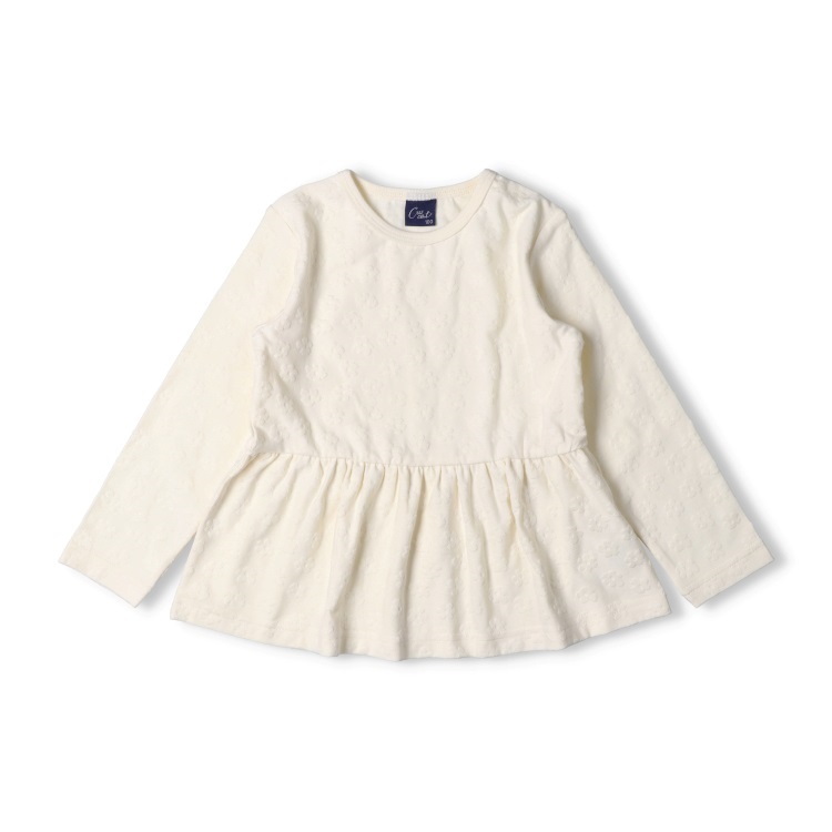 *お花柄ジャガード長袖Tシャツ(オフホワイト-100cm)