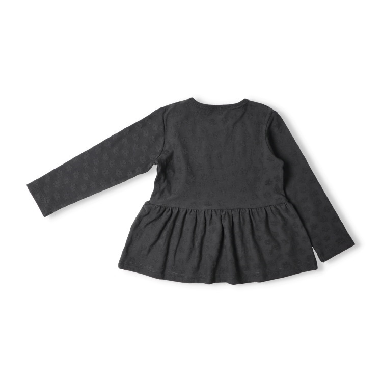 *お花柄ジャガード長袖Tシャツ(ブラック-90cm)