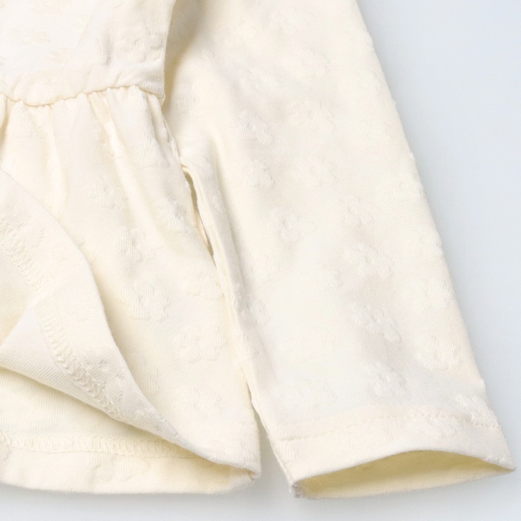 *お花柄ジャガード長袖Tシャツ(オフホワイト-80cm)