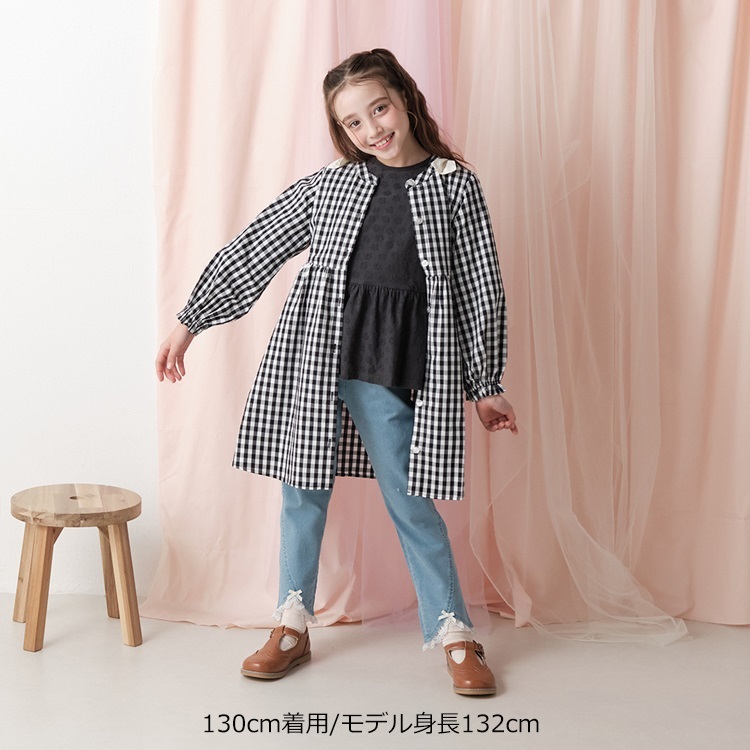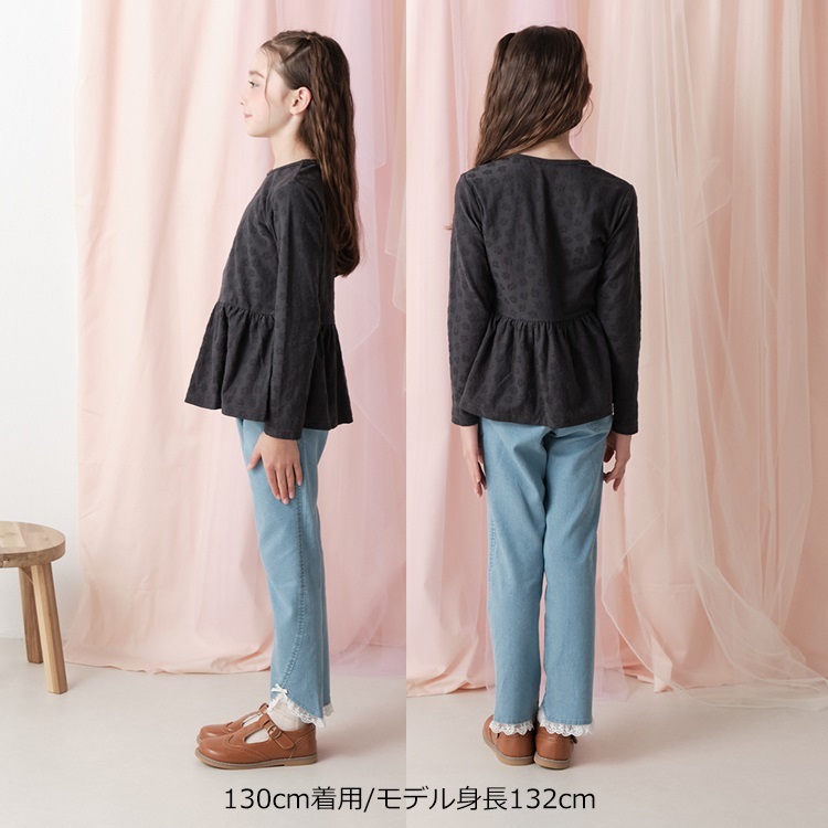 *お花柄ジャガード長袖Tシャツ(ブラック-130cm)