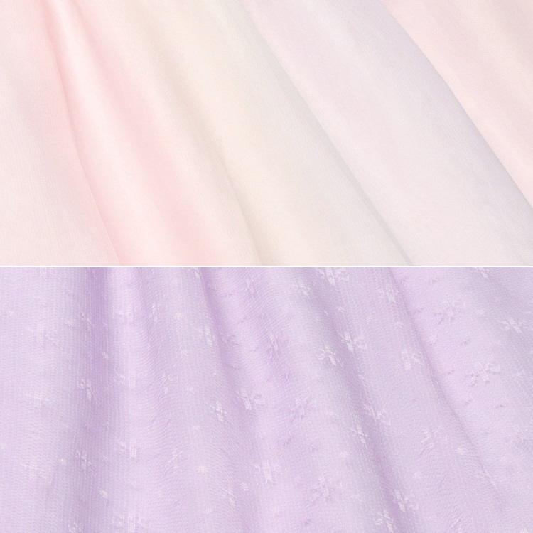オフホワイトはレインボーカラーのチュール、ラベンダーはお花柄チュール。