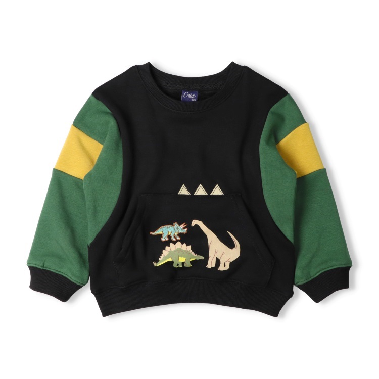 恐竜プリント切替裏起毛トレーナー(ブラック-100cm)