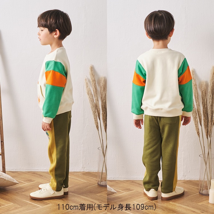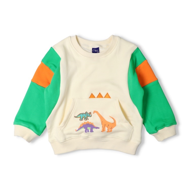 恐竜プリント切替裏起毛トレーナー(アイボリー-110cm)