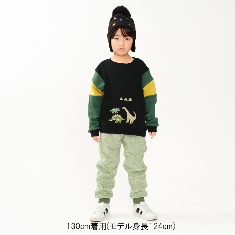恐竜プリント切替裏起毛トレーナー(ブラック-130cm)