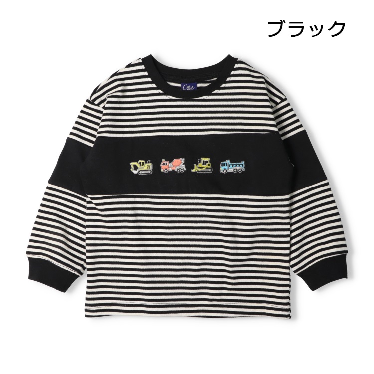 働く車刺繍ボーダー長袖Tシャツ(ブラック-100cm)