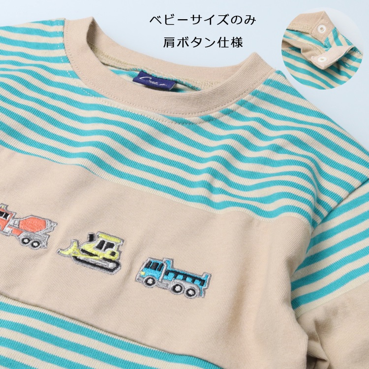 働く車刺繍ボーダー長袖Tシャツ(ブルー-80cm)