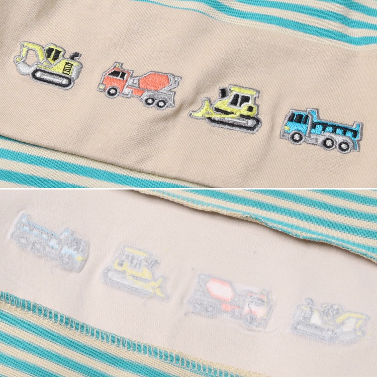 並んだ働く車の刺繍が可愛い!