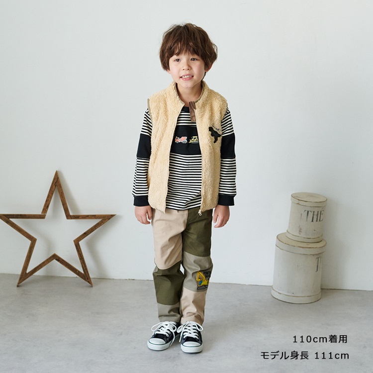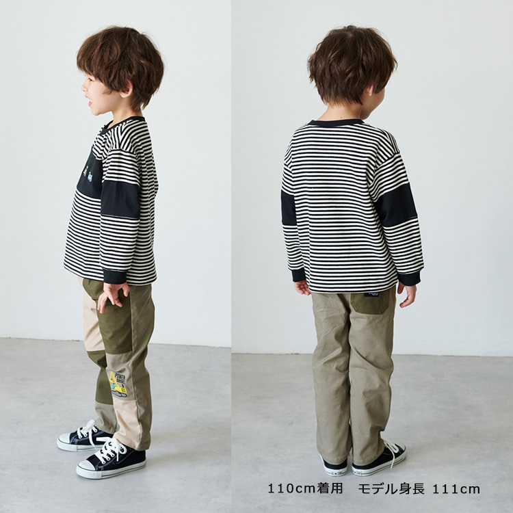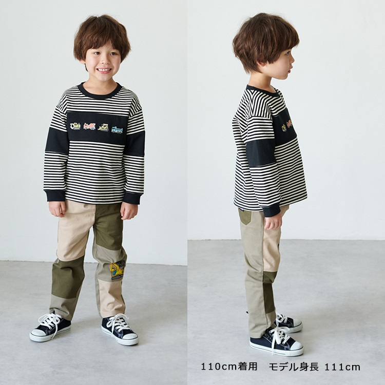 働く車刺繍ボーダー長袖Tシャツ(ブラック-110cm)