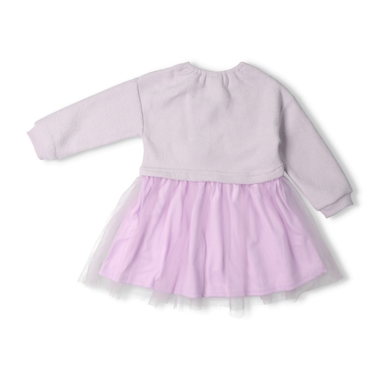 ネックレス風刺繍チュールドッキング裏起毛ワンピース(ラベンダー-90cm)