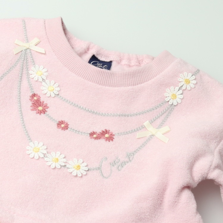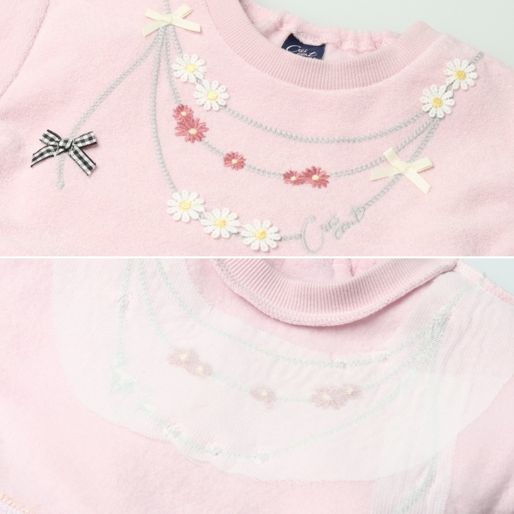 ネックレス風刺繍チュールドッキング裏起毛ワンピース(ピンク-80cm)
