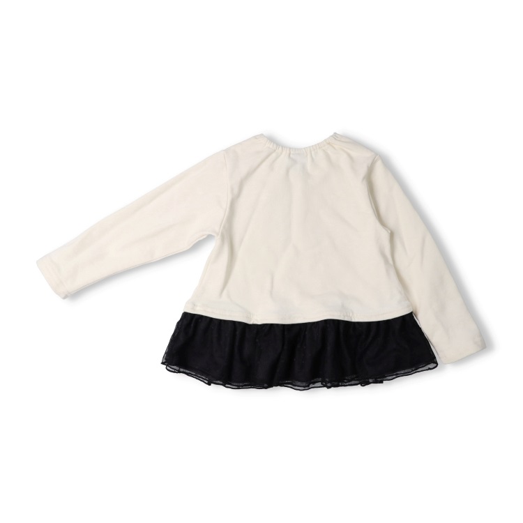 リボン付き裾チュール裏毛トレーナー(オフホワイト-90cm)