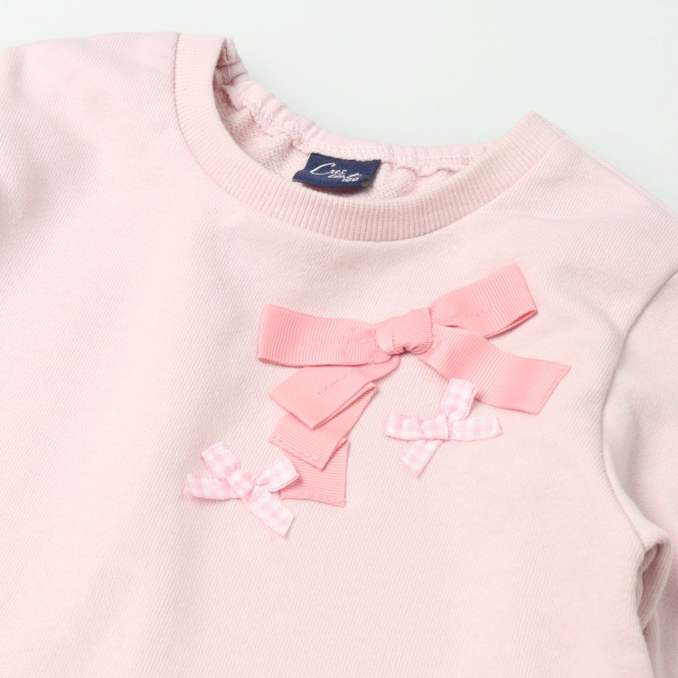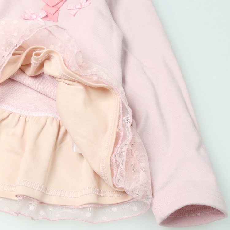 リボン付き裾チュール裏毛トレーナー(ピンク-80cm)